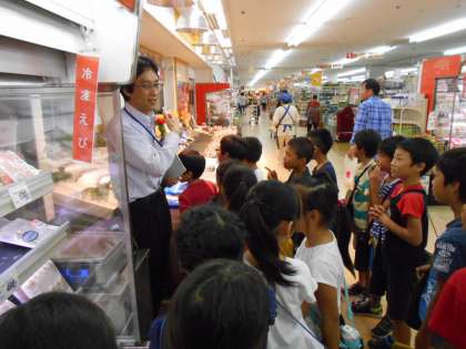 校外学習 1 ピアゴ常滑店 公開日 2017/01/15 更新日 2017/01/15 3 年 10月5日,ピアゴ常滑店の見学に行ってきました。ふだんは入れないバックヤードなどを見せてもらい,説明もしていただけました。 子どもたちは,魚を切る包丁の長さに驚いたり,マイナス20度の冷凍庫に入ったりして,とてもよい学習ができました。