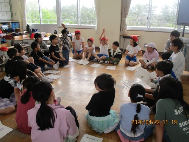今年初めてのカラー班活動である、ニコすず集会がありました。ペアになった子と「よろしくねカード」を交換しました。6年生が司会を務め、班遊びをしました。楽しそうな低学年の子とやさしく声をかける高学年の素敵な笑顔がたくさん見られました。