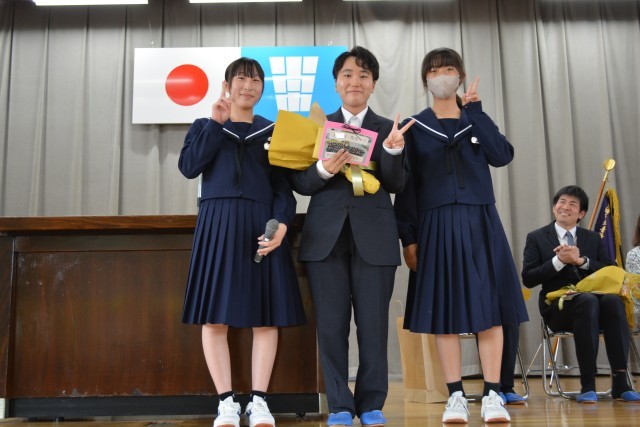 式の前には、バスケットボール大会優勝の表彰や、創意工夫展や人権作文等の作品応募の表彰がありました。