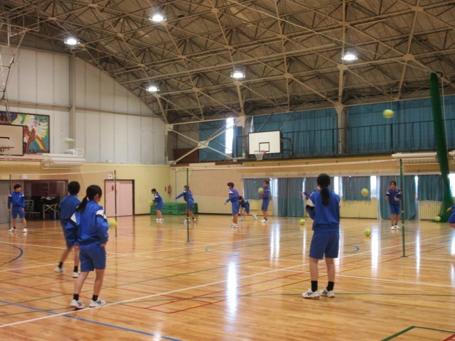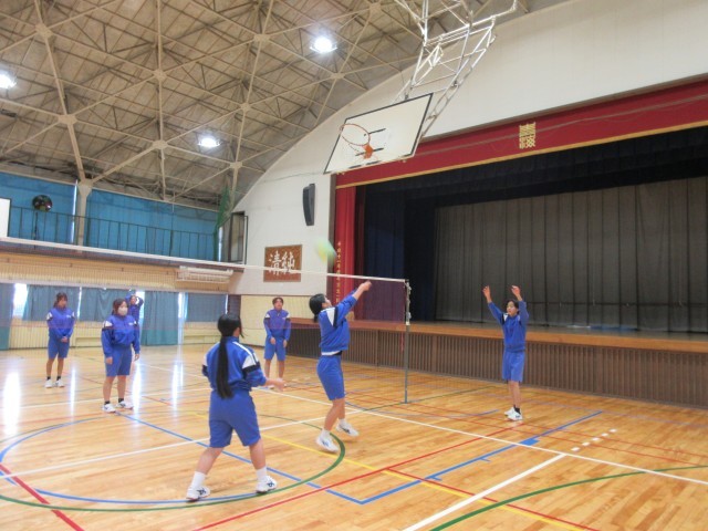 バレーボールの授業が行われていました。和やかな雰囲気でやっているのかなと思って体育館をのぞくと、生徒たちが真剣に動きながらピリッとした空気で練習を行っていました。一生懸命行っている姿が、とてもすがすがしく感じました。