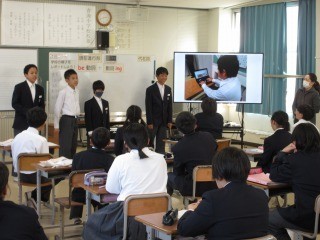 3年生では、5限に市の防災危機管理課の方々を講師に招き、防災学習を行いました。風水害と震災を中心に、災害について詳しく説明して下さいました。災害の怖さや対応方法など分かりやすく教えてくださいました。自助と共に、共助についても考えることができました。