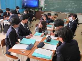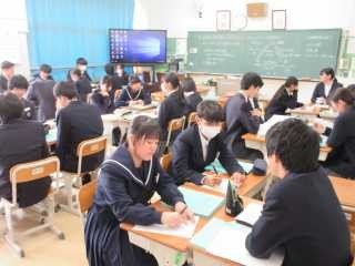 2年生の家庭科の授業では、「計画的な金銭管理の仕方」を学習課題に、考え合いました。教師の丁寧な説明を受けて、班ごとに意見をまとめ、考え合う協働的な学びが充実していました。生活について、自分事として捉え、学習することができています。