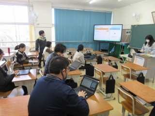 次年度より、常滑市で導入される予定の「学習支援アプリケーション」(=ドリルパーク)の研修が、現職教育として行われました。市内での研修を受講した教員が、伝達講習として校内の研修に紹介し、実際に使ってみる体験をしました。以前のeライブラリーに変わる新しいものです。教員も学び続けています。