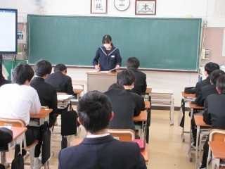 3年生の音楽の授業では、卒業式に歌う「旅立ちの日に」の合唱を練習しています。今日の授業では、2班に分かれて、それぞれペアの合唱を観点を基に聴き合い、意見交換し、創り上げていく学習をしました。温かい雰囲気の中にも、卒業式の合唱を成功させようという意気込みが感じられました。