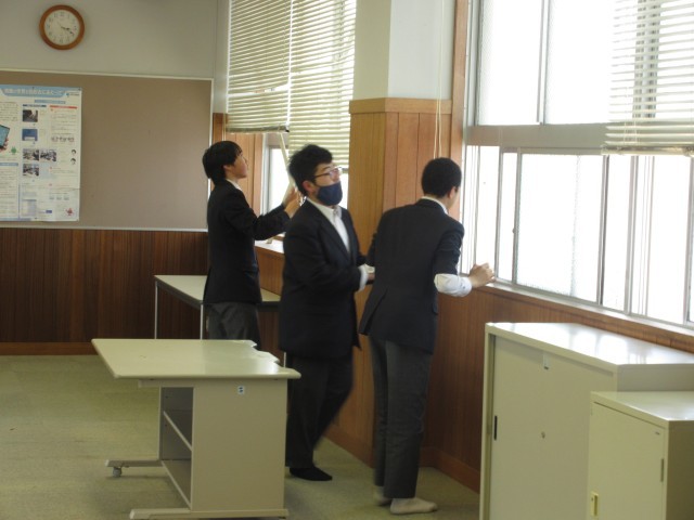 生活委員会により、今年度最後のあいさつ運動が行われました。3年生が卒業して、人数が少なくなりましたが、頑張っていました。最後に、生活委員みんなと生活委員会の顧問の教員とで記念写真を撮りました。みんなすてきな笑顔です。