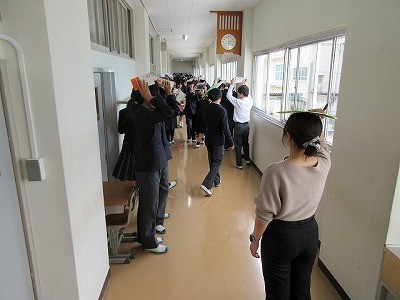 全員で校歌を歌った後、先生方は生徒の作る花道を通っての退場となりました。先生方が体育館を出られても、生徒たちが体育館から渡り廊下に出てきて、繰り返し花道を作り、お別れや感謝の気持ちを伝える姿がありました。