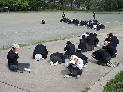 車の移動と重ならないように、時間差を付けて下校を行います。