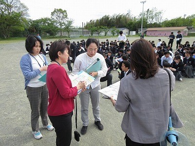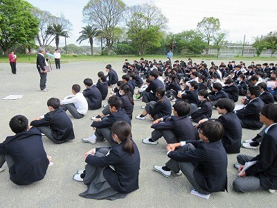 2名の新しい教員を迎えて、着任式・新任式が行われました。その後、校長より担任発表や部活動顧問教員の発表がありました。