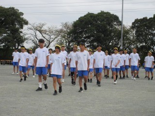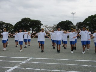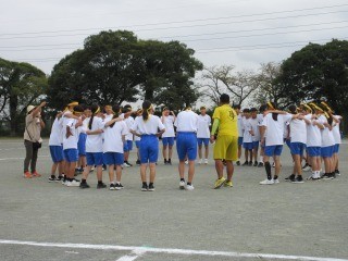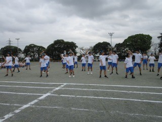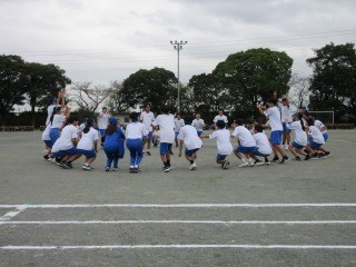 各担任による先攻後攻決めのあと、両クラスとも円陣を組み、ダンスが始まります。昨年度よりも、子どもたちの工夫で格段に切れがあり迫力のあるダンスになっています。すばらしい団結です。