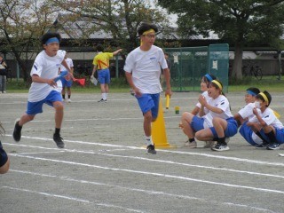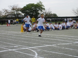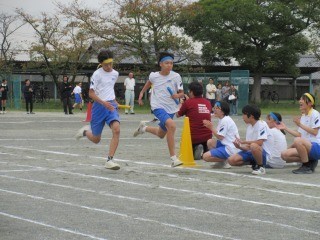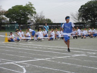 学級大リレーの様子です。各学年白熱した走りでバトンをつなぎ、会場全体が熱気に包まれました。大勢の声援が響き合いました。みんなよくがんばりました。