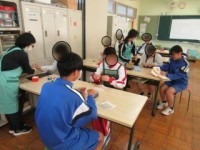 半田特別支援学校と青海中1年生との第2回の交流会(「ワークワク交流会」)が行われました。青海中の1年生の生徒は、クラスごとに分かれて、バスで半田特別支援学校を訪問し、交流をしました。平織り、刺繍、缶つぶし、芋掘り・落花生掘り、工芸などの作業を一緒に行いました。2回目の交流で、ペアの子ども同士のコミュニケーションも慣れてきました。どんな接し方をすればよいかもよく考えて、工夫していました。