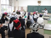 2年生では、技術の栽培の授業で種から育てたレタスを収穫したレタスは、家庭科の調理実習で、しょうが焼きと一緒にお皿に盛り付けられます。技術と家庭科で連携した授業を行っています。