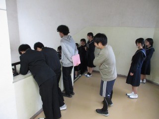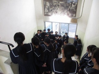 3年生のあるクラスは、授業後、階段で合唱練習をしました。歌声が反響し、学校中に響き渡りました。歌っている3年生も心地よさそうでした。歌詞の心に響きます。屋外で練習しているクラスもありました。