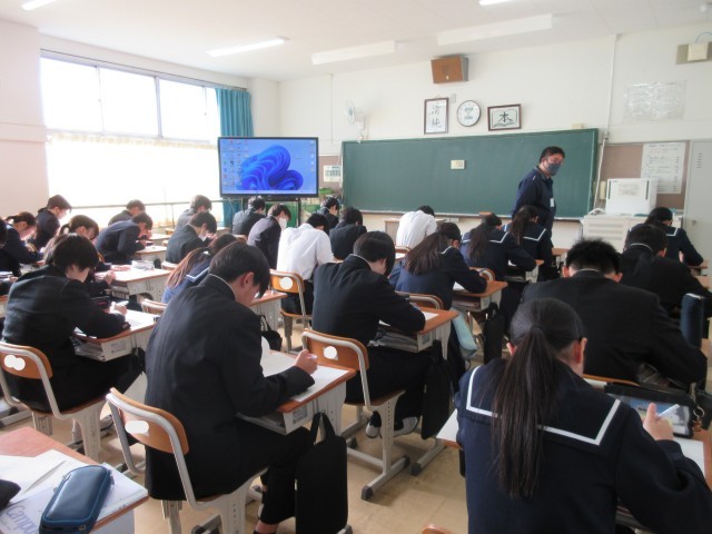 3年生の数学の授業では、公立入試に向けて、公立の過去問に挑戦していました。静まりかえった教室には、シャーペンで書いた音が響きわたっていました。今回の結果を踏まえ、家庭での受験勉強につなげてほしいです。