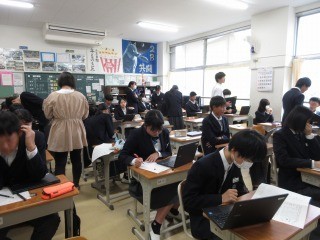 2年生では、栄養教諭による食育の授業が行われました。「丈夫な體(からだ)をつくろう」というテーマで、カルシウムの働きや1日に必要なカルシウムの摂取量や自分の摂取状況などを確認しました。最後には、それぞれの食生活をグラフ化して、見直したり、比べ合ったりしました。