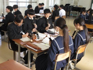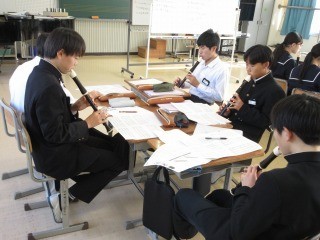 3年生の音楽では,器楽の学習をしています。アルトリコーダーを用いて、クリスマスの曲などを演奏しました。班ごとに協力することで、音楽に親しみながら、演奏を楽しみました。