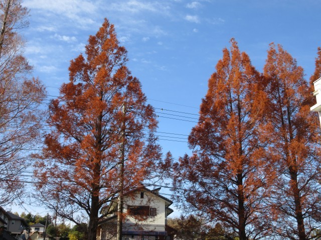 青海ブルーの清々しい空のもと、本校の名物のメタセコイヤも日に日に色を変化させて、今はアプリコット色(杏色)です。冬に向かって、様相を変化させています。季節の移り変わりを感じる美しい光景です。