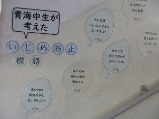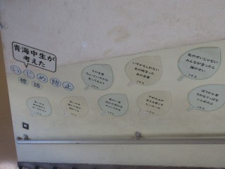 青海中生が考えた「いじめ防止標語」が、本校のスタッフにより本館西側の階段に掲示されました。いじめを起こさないという意識を全校で高めていきたいと思います。次は、南館にも掲示される予定です。