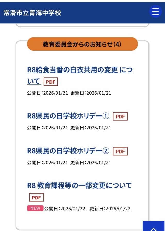 令和8年度からの教育課程等に関する教育委員会からの通知を、「学校掲示板&配付資料」にも掲載しました。大事な連絡がたくさんありますので、ご確認ください。