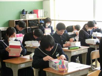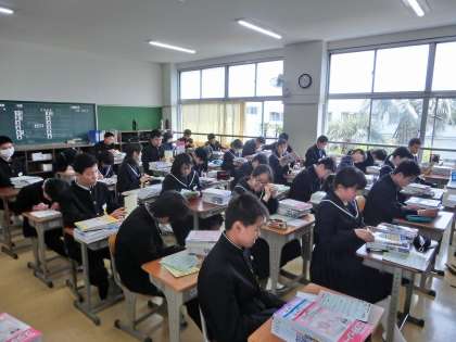 本日より、毎日の課題である家庭学習の提出が始まります。昨日、問題集を配ると1・2年生の時と厚さが違うことに驚いていました。その問題集を毎日コツコツ学習すると、3年間のまとめができるようになっています。受験生という自覚をもち、毎日の家庭学習に励み、必ず毎日提出する習慣をつけましょう。また、若あゆ日記も毎日丁寧に取り組みましょう。真剣に毎日取り組むことで、1年後には文章を書く力がついているはず。