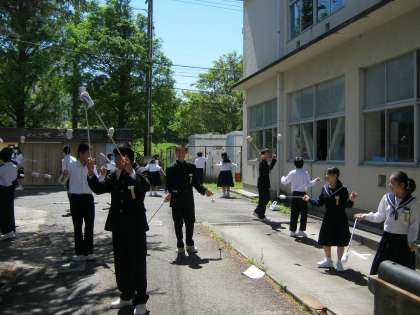 火の舞の練習がスタートしました。オーディションに向けて,課題を一生懸命練習している姿が見られました。小学生の時に経験している生徒が多く,ほとんどの生徒がすでに基本の動きができていました。中には中学生で初めてチャレンジしたという生徒がおり,周りの生徒に追いつこうと懸命に練習していました。本番は素晴らしい火の舞になるようにがんばってほしいです。