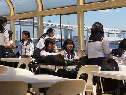 いよいよ最終日です。クラス別研修を行いました。A組は、横浜の街を船の上から眺めるクルージング。B組は、カップヌードルミュージアムに行きました。