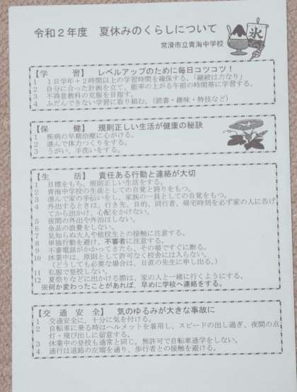 PTAより・1 コロナ下の夏休み