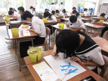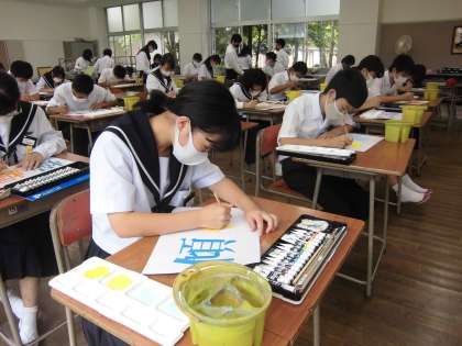9月30日 授業の様子(2B 美術) 公開日 2020/09/30 更新日 2020/09/30 お知らせ 今、2年生が美術で取り組んでいる課題は、文字のデザインです。レタリングした文字の横に、その文字の意味をデザインした文字を描いています。完成した生徒の作品が黒板に掲示されていました。レタリングの文字はきれいで、デザインした文字はなかなか面白いですね。 いいね(0)