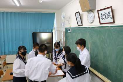 10月1日 授業の様子(1年 総合) 公開日 2020/10/01 更新日 2020/10/01 1年生より 1年生は、14日(水)の半田特別支援学校とのオンラインでの交流に向けてグループで話し合いをしました。どのような流れで自己紹介やゲームをすると相手に伝わりやすいのか考えました。 画面の向こうに初対面のペアの生徒がいるという交流になりますが、1年生の生徒たちは想像力を働かせ、大人が思いつかない柔軟な発想でゲームを考えています。前向きな姿勢がすばらしいです。 いいね(0)