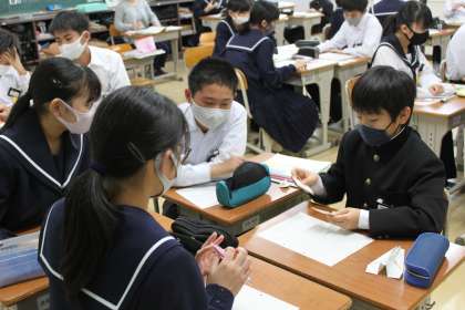 10月22日 授業の様子(1A 国語) 公開日 2020/10/22 更新日 2020/10/22 お知らせ 接続語が書かれたカードを使って、班で文を作りました。班で話しながら作ることで、正しい使い方を確認していました。 いいね(0)