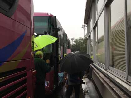 あいにくの雨天となりましたが、待ちに待った校外学習に出発しました。午前は有松絞の体験、午後はレゴランドです。