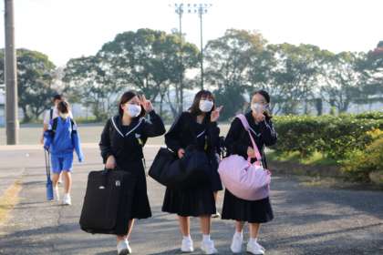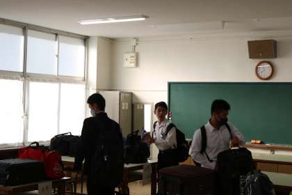 いよいよ明日より修学旅行です。今日は、事前指導と荷物点検があります。朝、大きな旅行用カバンをもって登校してきた3年生です。準備は万全でしょうか。