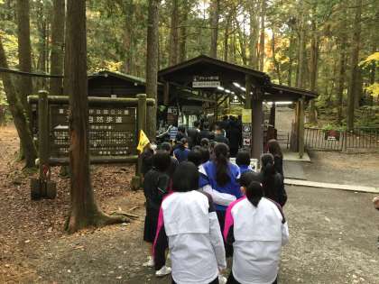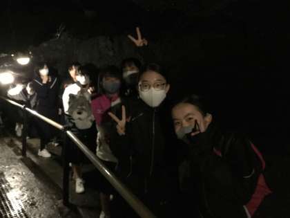今日の1番目の見学地は富岳風穴です。中は冷蔵庫のように冷えていました。ドングリの種子が冷蔵保存されていました。