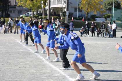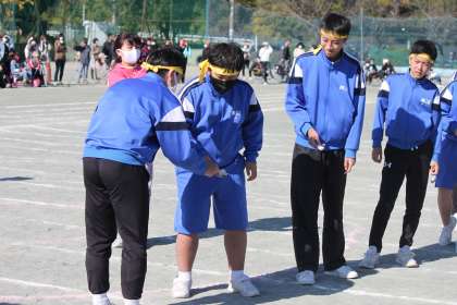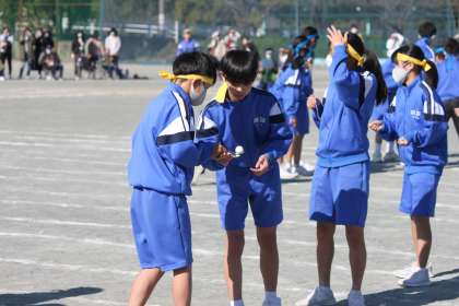 風に負けずに、ピンポン球を素早く受け渡しました。