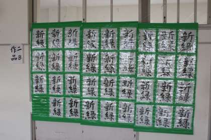 12月14日 生徒の作品展示 公開日 2020/12/14 更新日 2020/12/14 お知らせ 生徒の作品を展示してありますので、懇談会でご来校の際にぜひご覧ください。 (写真上)1年学習室…書写、家庭科(エコバック) (写真中)2年学習室…書写 (写真下)被服室(3年)…書写、家庭科(幼児のためのおもちゃ) また、3年学年室・3年学習室には美術の作品を展示してあります。力作ばかりですのでぜひご覧ください。 いいね(0)
