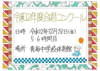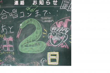 12月16日 合唱コンクールに向けて 公開日 2020/12/17 更新日 2020/12/17 お知らせ 合唱コンクールが迫ってきました。教室の背面黒板にカウントダウンがありました。美術部の生徒もコンクール用の表示を作成しました。 いいね(0)