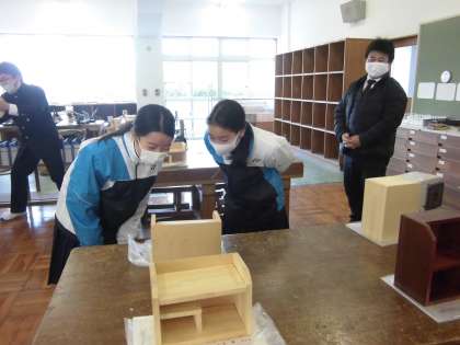 12月21日 1年生 「木工作品の展示見学」 公開日 2020/12/21 更新日 2020/12/21 お知らせ 2学期、1年生の技術では、CDラックや本立てなどの木工作品を製作しました。今日の昼放課に、他のクラスも含め友達の作品を見学しました。今後、作品は家庭に持ち帰ります。ぜひ、お家で使ってください。 いいね(0)