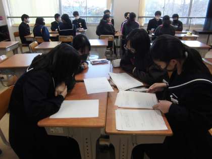 課題テストを終えた6時間目は、2年生全体で「3年生を送る会」に向けての準備を進めました。各担当に分かれて、話し合いや作業を進めました。