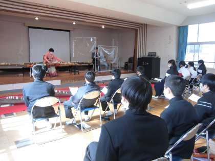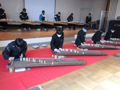 1月26日 出前授業(1年生 音楽)(2) 公開日 2021/01/26 更新日 2021/01/26 お知らせ 緊張しながらも楽しそうに箏の演奏体験をしていました。なかなか良い音色でした。1曲ひけるようになるといいですね。 いいね(0)