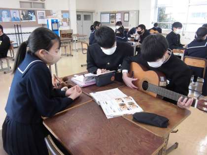 1月29日 授業の様子(3A 音楽) 公開日 2021/01/29 更新日 2021/01/29 お知らせ クラッシックギターの練習をしました。これまでに音階を学び、今日は、「アニーローリー」という曲を練習しました。 いいね(0)