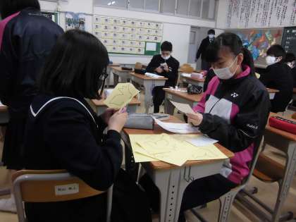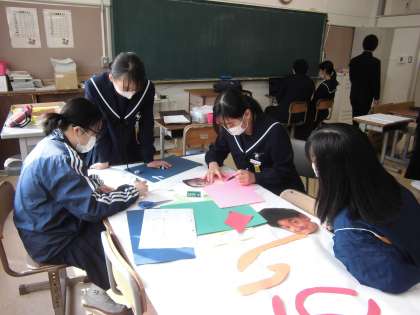 教室では、3年生を送る会の飾り付けの準備を進めていました。
