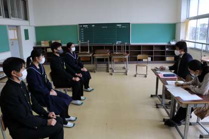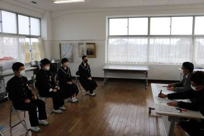 校長・教頭が面接官となり、模擬面接を行いました。本番さながらの緊張感でした。