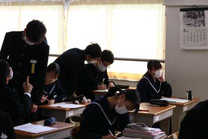 2月17日 授業の様子(3A 数学) 公開日 2021/02/17 更新日 2021/02/17 お知らせ 教え合い学び合っています。苦手な問題を解決したという思いが大切です。がんばれ3年生! いいね(0)