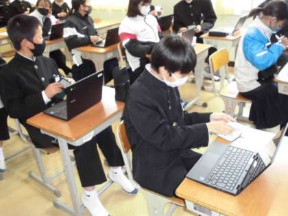 2月18日 授業の様子(1A 総合的な学習の時間) 公開日 2021/02/18 更新日 2021/02/18 お知らせ 自分のタブレット端末を受け取り、名前のシールを貼りました。情報モラルについて担任から説明を受け、初めてログインしました。生徒たちは、操作を覚えるのが本当に早いです。 いいね(0)