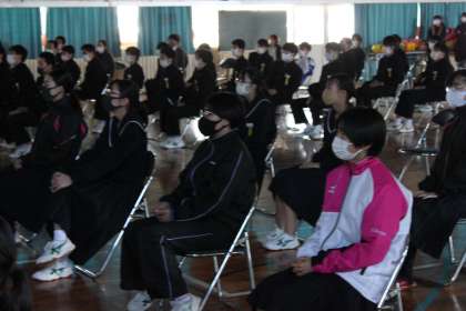 2年生からは、3年間の学校クイズや思い出のスライド、ビデオメッセージが贈られました。心温まる素晴らしい内容でした。この日のために準備した2年生の思いのこもった贈り物でした。