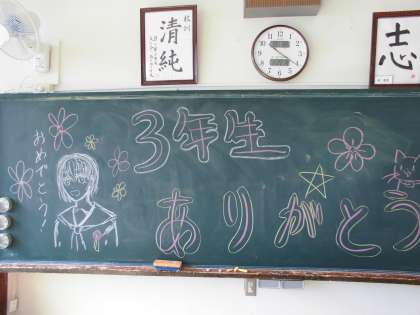 2月19日 3年生を送る会 その4 公開日 2021/02/22 更新日 2021/02/22 お知らせ 3年生が教室にもどると、廊下や黒板に2年生からのすてきな演出がありました。一輪一輪の花には、2年生一人一人から心温まるメッセージが書かれていました。 いいね(0)