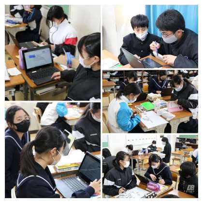 同じファイルに、自作の時差の問題を入力し合い、グループで協力して解きました。共同編集もすぐに慣れて、たくさん問題を入力していました。生徒たちは吸収が早いです。