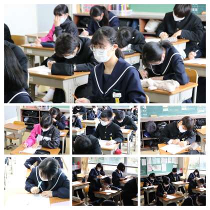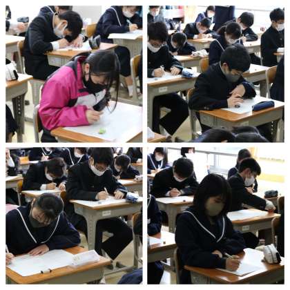 確率についての単元プリントに取り組みました。どこまで理解できているのか、自分自身で振り返るよい機会です。2年生の内容は2年生のうちにしっかり身に付けておこう。