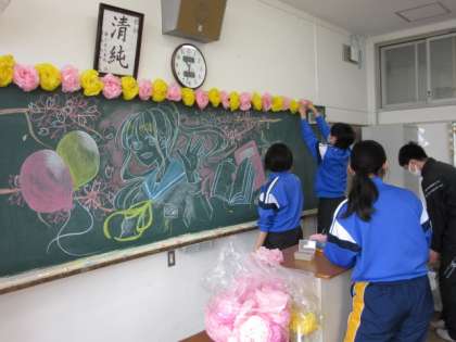 4月6日 入学式準備2 公開日 2021/04/06 更新日 2021/04/06 学校行事 1年生の教室の様子です。チョークアートあり、花飾りあり。1年生の皆さんを祝福してくれています。おっと、重たい教科書も机の上に置いてありました。 いいね(0)