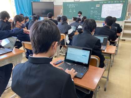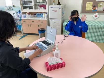 1年生は聴力検査をしました。2年生は林間学校の体験活動アンケートをタブレットに回答しました。